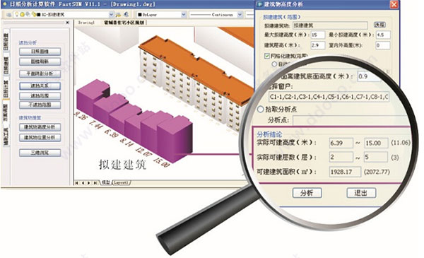 可以推算拟建建筑在满足建筑日照要求时,左右前后移动的幅度及转动角度