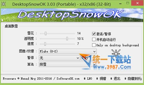 DesktopSnowOK(桌面雪花小程序) v3.36 中文绿色版软件大小:0.13MB