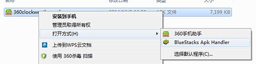 3.下载完整的APK文件,右击apk图标,选择打开方式--BlueStacks APK handler安装游戏