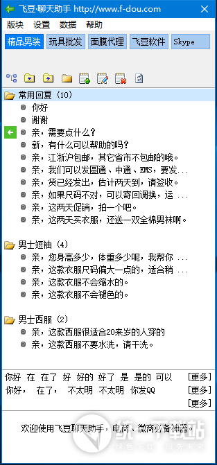 飞豆微信聊天机器人自动吸附在腾讯QQ、营销QQ、微信PC版、阿里旺旺、千牛、Skype、京东咚咚、IS语音、YY语音。等聊天工具右边,一键发送文字、图片、文件,使工作效率提高N倍。