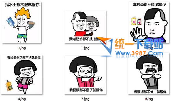 我水土不服就服你表情包是一款非常搞笑的表情包,改款表情包适用范围非常广,主要用于对他人的说话表示服气佩服,感兴趣的朋友快来下载体验吧!