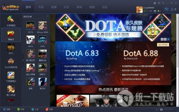 11对战平台是新一代电竞平台,立足电竞玩家的需求,提供服务器建主、万人房间、反作弊等极致游戏体验,最新的双线不卡、不掉线电竞平台,支持Dota、魔兽争霸、澄海和真三国无双。
