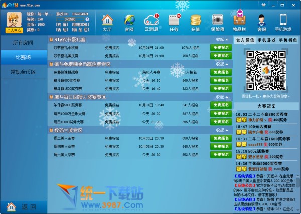 癞子斗地主是普通斗地主的升级版,而91Y癞子斗地主又是癞子斗地主中最好的平台,在这里你无需任何费用就能参加所有比赛项目,只要你在这些比赛中脱颖而出,你就可以获得话费大奖,只要你有本事,只要你够强,话费拿到你手软,当然还会有许多礼品比赛,快来拿走属于你的奖品吧。