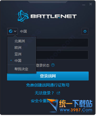 3、再进入战网登录器,可以选择亚服/欧服/国服/美服登录了