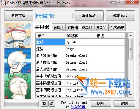 打开修改器,选择想要读取的存档,修改对应数据即可。详细教程:RMVX修改器使用方法(制作中....)