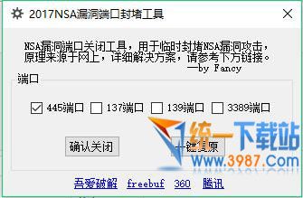 2017NSA漏洞端口封堵工具 v1.0 绿色最新版软件大小:0.009MB