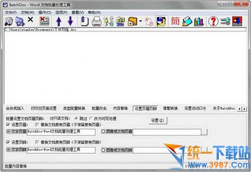 Word文档批量设置页眉页脚功能:批量为Word文档设置页眉页脚。