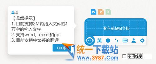 英文翻译更便捷,只需将待翻译的稿件拖入轻敲窗口,即可享受译文自动联想的便捷功能!