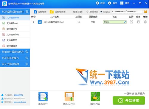3、输出选项。文件转换器软件默认将转换出来的文件保存在原文件夹内,或者自定义文件夹存储路径,最后点击上方“开始转换” 即可顺利完成转换。