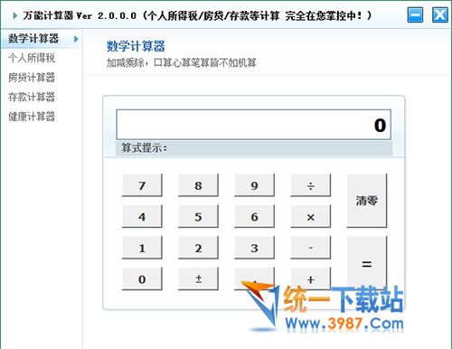 万能计算器是一款功能全面的计算器软件,集合很多功能于一体,除却简单的加减乘除功能,包含常用、智能、公式、函数等计算功能,包括十六进制、十进制、八进制、二进制、角度制和弧度制等,还可以计算正弦等函数。软件打破传统计算器模式,还支持:数学、按揭、存贷、所得税、健康计算器。
