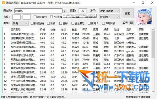 淘宝大买家(TaoBaoBuyer) 是一款方便淘宝买家对淘宝的海量宝贝中的价格、快递费、已卖出数量、卖家信用、卖家好评率等信息进行搜索、比较、排序的绿色小软件。淘宝大买家内置多种排序方式(时间排序,价格排序,信用排序,销量排序,销量+价格,销量+信用),可以快速方便的查找到想要的宝贝。