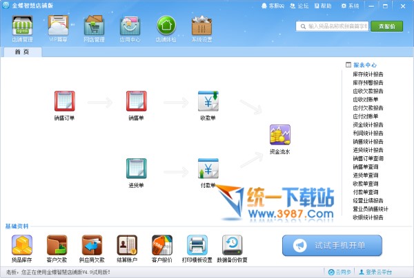 金蝶智慧记店铺版是一款十分出色的店铺管理软件,它能够帮助用户对店铺进行管理,让你能够轻易管理店铺的报表、订单、库存等,实现一体化的店铺销售流程,有需要的用户请放心下载。