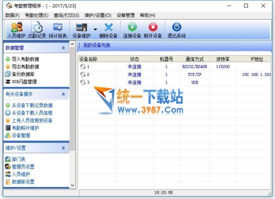 7、将设备上的考勤数据下载至软件中(连接设备-从设备下载记录数据)