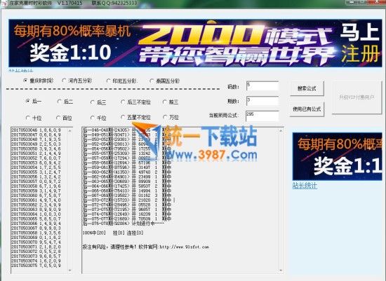 庄家克星时时彩软件是一款免费的时时彩软件,软件目前有重庆时时彩、越南时时彩(河内五分彩)、菲律宾时时彩(印尼五分彩)等多个彩种,软件玩法有后一(一星)、后二(二星)、后三(三星)、后三不定位、五星不定位、十位、百位、千位、万位定位胆、前三星玩法等各种主流玩法。软件的主要要特点是不搜公式,不固定公式,采用智能计算,内置智能学习、智能判断模块、能有效降底连挂的概率。软件还具有使用已知公式,搜索未知公式等玩法,功能强大,是时时彩玩家必不可少的工具!