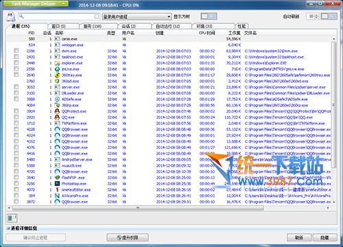 也可以用来替代windows自带的任务管理器,十分的有用,这个高级任务管理器被作者制作成了单文件绿色版软件,这就意味着,Task Manager DeLuxe无需安装,也可以存放到任何地方运行,甚至是U盘中。