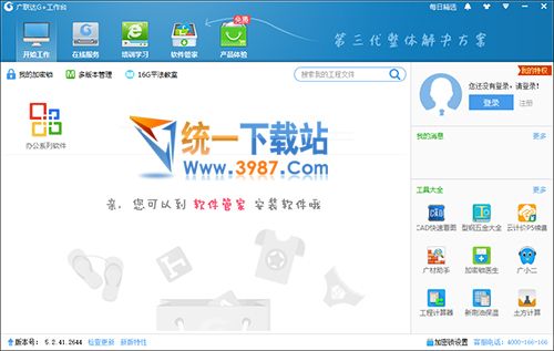 广联达G+工作台是一款专为用户提供产品服务的桌面客户端软件,支持广联达所有软件的一键下载,安装和升级。G+工作台可以帮助用户快速打开近期编辑过的工程和文件,并且提供了一系列便捷的小工具,方便用户解决日常工作中遇到的问题。同时,G+工作台还提供了广联达软件中遇到各类问题的解决方案。在G+工作台中,用户还可以报名参加广联达软件的培训学习和购买自己所需要的各类广联达软件和产品。