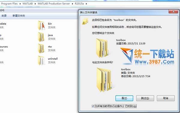 12.然后进入你的安装目录,即你的matlab安装的路径,点击去,粘贴这三个文件夹,替换以前的文件。