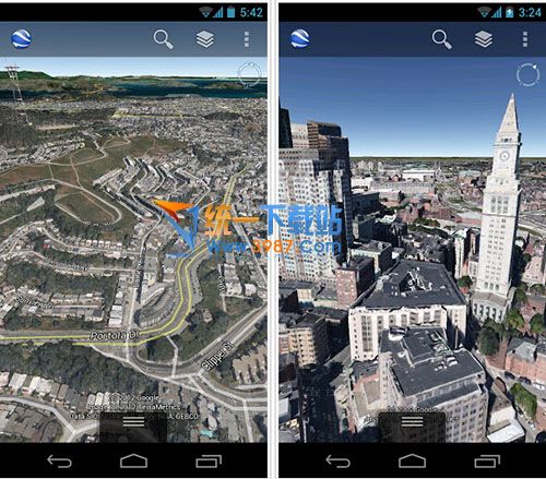 利用全新的 3D 图像,您现在可以尽情游览完全以 3D 方式重构的部分城市,包括旧金山、波士顿、罗马等等。所有建筑物都采用 3D 模型,让您真切获得从城市上方飞过的感觉。3D 图像功能在部分设备上可以使用,包括大多数的平板电脑。