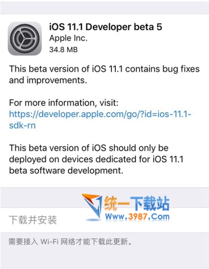 苹果iOS11.1 beta5开发者测试版,本次主要是bug修复和改进,但部分用户遇到了最新测试版无法通过OTA更新的问题。