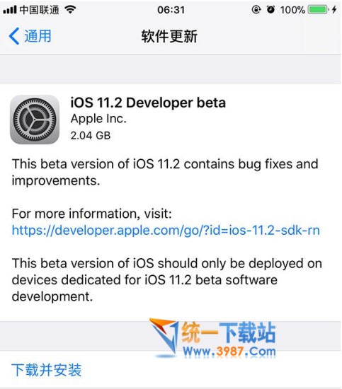 苹果iOS 11.1开发者预览版beta4固件下载(点击链接后打开国外镜像网站,再点击网页中部“Download”即可下载。由于是国外网站,下载速度可能会比较慢):