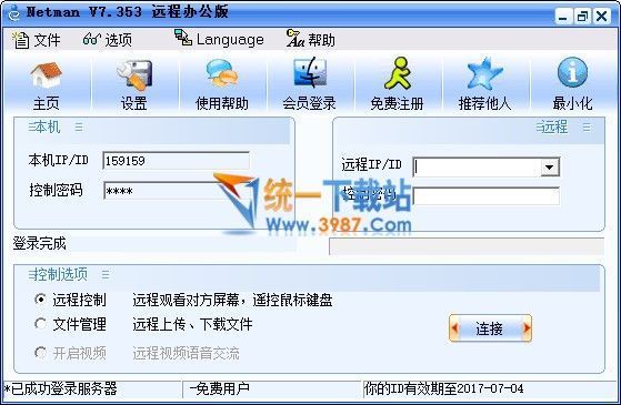 Netman办公版完全免费,可使用屏幕控制和文件管理功能,主要用于远程办公,提高工作效率。连接时被控方会弹出提示,告知计算机处于被控状态,被控方可以随时中断连接。