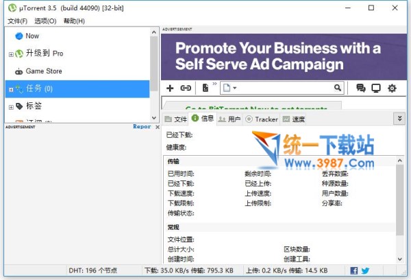 软件无需安装或解压,直接下载运行即可,界面简洁大方,无需适应,你很快就能上手,µTorrent没有任何广告,它在内网下载方面也有不错的表现,外网就更不用提了。