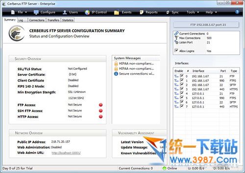 Cerberus FTP Server 是一个FTP服务器软件,Cerberus FTP Server在为用户提供专业级别的安全 SSL/TLS 加密标准和强大的 FTP 服务器性能的同时还保持了简单易用的特点。