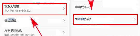 2、接着点击【联系人管理】选项,进入后点击【SIM卡联系人】选项。