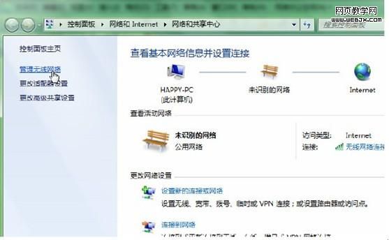 2.在弹出的窗口中点击左侧"管理无线网络"按钮.