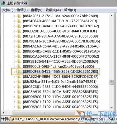 7、在返回至注册表,在 HKEY_CLASSES_ROOT\Wow6432Node\CLSID\ 路径下面找到刚才对应的“类 ID”的数值。