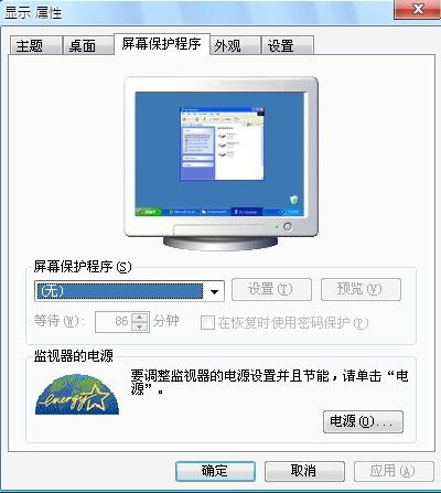 在桌面空白处点击鼠标右键。 弹出“显示属性”对话框,选择屏幕保护程序。