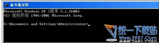 在Windows XP 环境中,点击开始-运行,在随后出现的运行窗口输入“cmd”命令,回车或点击确定进入下图所示界面。