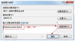 4. 在“输入对象名称来选择”下框中,输入“AU”,点击“检查名称”,再点“确定“;