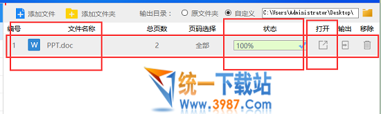 6、点击开始转换后,我们可以看到此刻的转换进展状态为100%,这也就表示转换成功结束,我们就可以打开进行预览了。