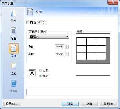 步骤一 单击工具栏中的页面设置按钮。在页面设置对话框中的页面选项卡定义页面尺寸。