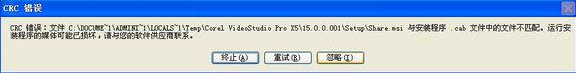 安装时出现CRC错误,文件与安装程序不匹配,运行安装程序的媒体可能已损坏。