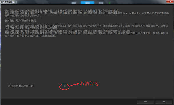 打开会声会影视频编辑软件,依次选择“帮助-用户体验改善计划”,把参加用户体验改善计划取消勾选即可。