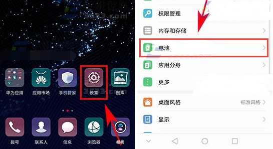 1、打开手机【设置】菜单,进入设置菜单后点击【电池】选项。(如下图)