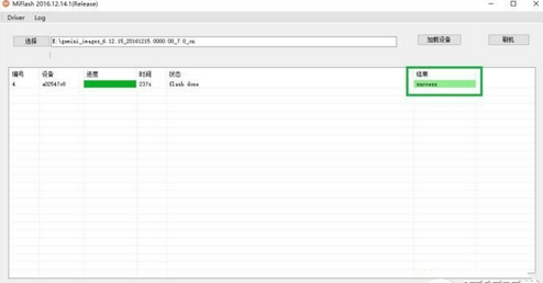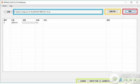 点击黄色圈选部分加载设备,刷机程序会自动识别手机,点击红色圈选部分刷机开始刷机。