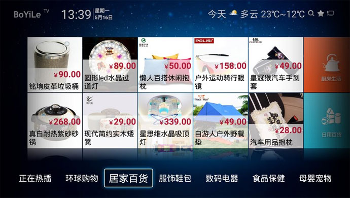 购好东西TV版是一款专门针对智能电视开发的电视购物专用应用软件,适用于系统版本为4.0以上的安卓电视及安卓系统机顶盒,可为用户提供美容护肤、家居用户、厨房家电、美食酒品、服饰箱包等各类商品的搜索、浏览、播放、购买以及促销活动等一站式购物体验。