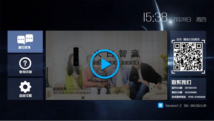 大白智音TV版是一款全新的语音识别的智能app,支持适配市面上90%智能电视和智能盒子。融汇了互联网上海量的影视、直播、音乐、天气、笑话等资源。打开电视无论在哪个界面,只要按住语音键,说出想看的影片、电视剧,想听的音乐、笑话,最近一周的天气等等,都可以帮助您精准及时地找到。您可以通过语音功能看您想看的、听您想听的种类繁多任您挑选。