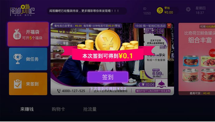 阅视赚吧TV版是一款专为客厅量身打造的视频购物应用。是隶属于中央级媒体中国国际广播电台(CRI)旗下的全国性家庭电视购物平台,定位为全球家居用品特卖频道。阅视环球购物针对用户量身打造厨房、环球、家居、美丽、热销、美食和综艺七个频道,功能完善,界面设计人性化,视频播放清晰便捷,让您足不出户就能享受大屏购物带来的快感。
