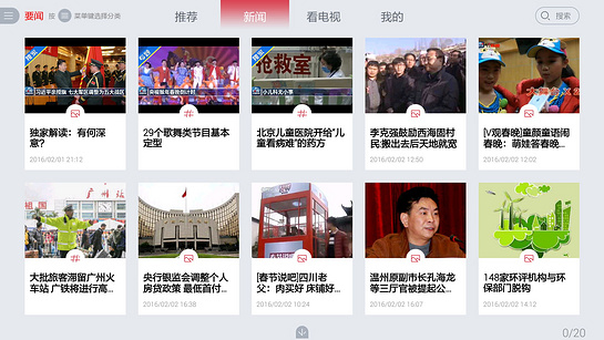 央视新闻TV版是一款安装在电视、机顶盒等Android智能设备上的新闻资讯类客户端,界面时尚简洁、操作简单;提供CCTV-13高清直播频道以及CCTV-13频道相关栏目订阅与视频点播。