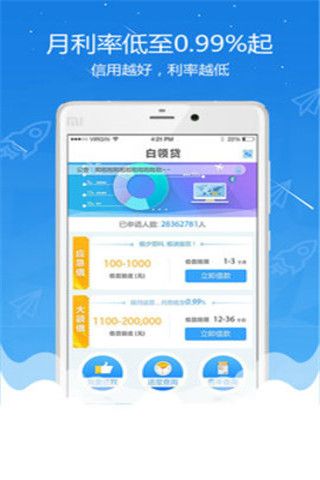 白领快贷安卓版是一款网上贷款服务平台,功能强大,使用大数据信用审批系统,成功打造申请、信审、还款全互联网一站式借款模式。无抵押贷款、大额抵押贷款。年满18周岁的中华人民共和国公民均可申请,安全有保障。