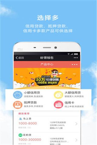1、选择多:信用贷款,抵押贷款,信用卡等多种贷款产品