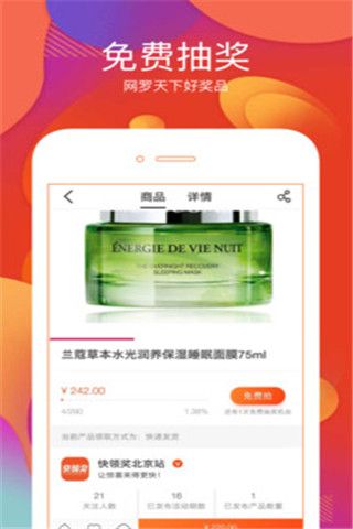 快领奖安卓版是一款购物平台,包含多种产品分类,用户可以选择自己喜欢的商品购买,还有超多优惠提供,用户们可在线便捷的选购商品,体验抽奖返、拿积分返还等服务。让你购物更轻松。