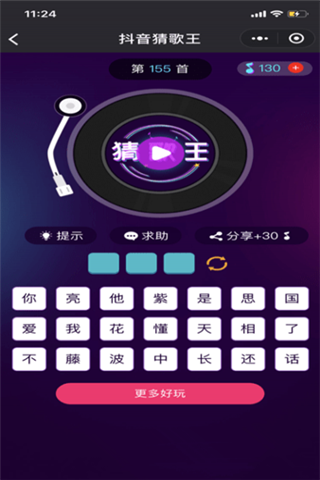 1.进入微信小程序,然后搜索 抖音猜歌王 再点击进入游戏。