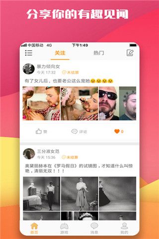 YOO趣安卓版是一款趣友们追求简单乐趣的聚集地,趣友们发布五花八门的趣闻,趣秀场里奇葩欢乐的征集活动,欢乐无限,在小游戏里和网友来一场手脑并用的欢乐竞技。为你提供一个轻松的愉悦时光。