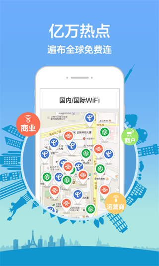 特点三:合法购买运营商千万热点,主要WiFi热点名如:ChinaNet、ChinaUnicom、and-Business、ap-pa033、bluesea-free、0wifi-free等,还有星巴克等商家热点等你来发现。