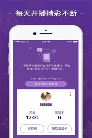 一步:准时参加直播节目,我们将在节目开始前通知你,请确保手机通知权限开启